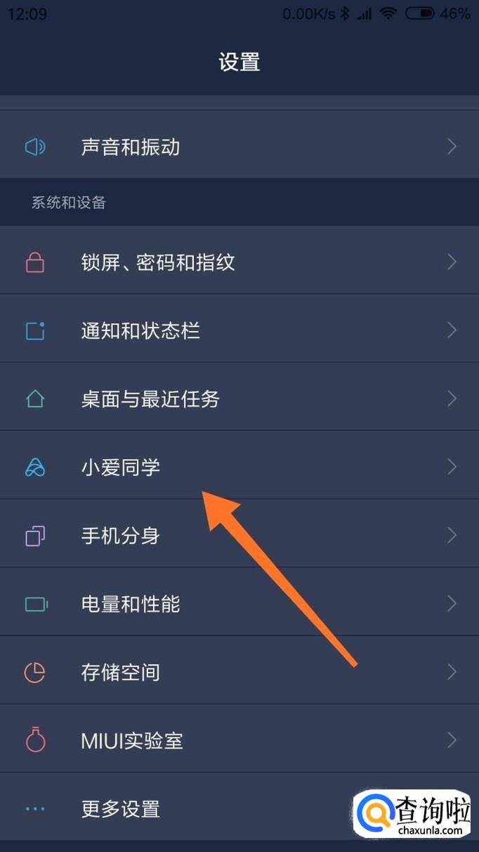下拉选择小爱同学