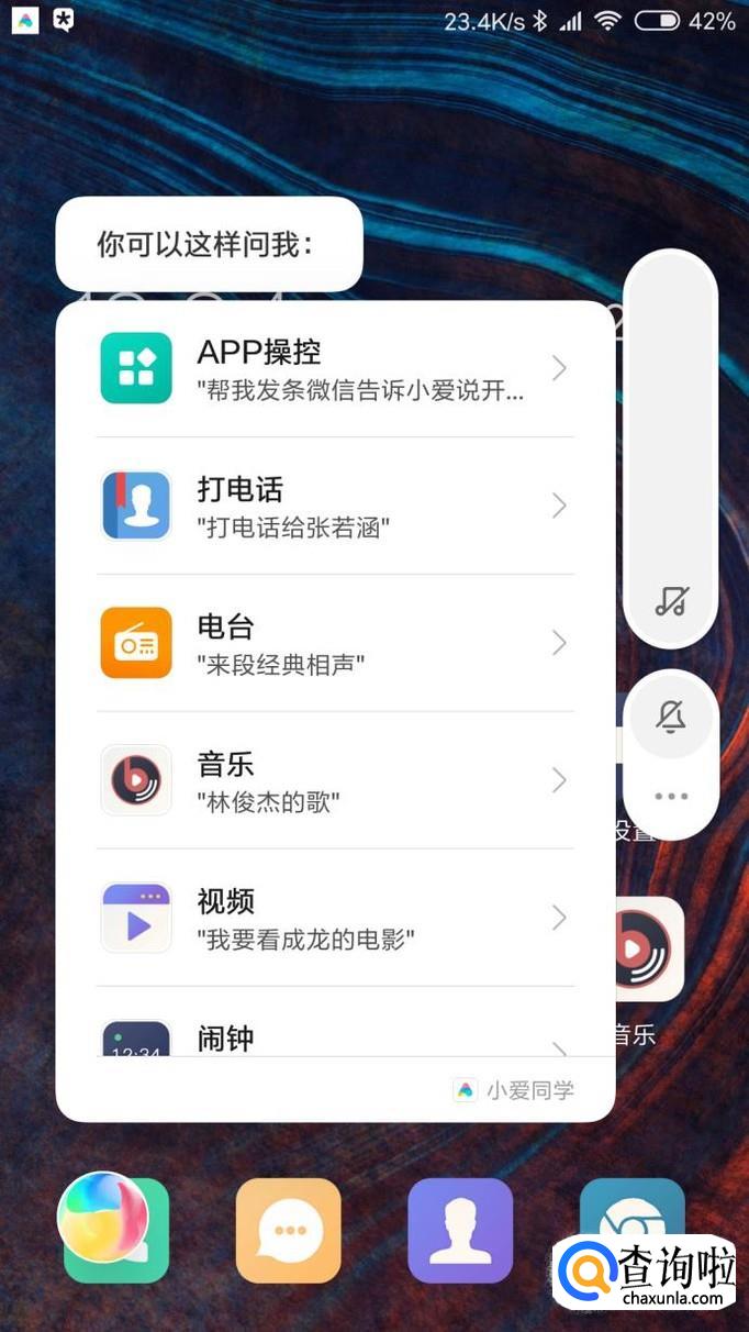 这个时候无论在哪,长按返回键就可以唤醒小爱