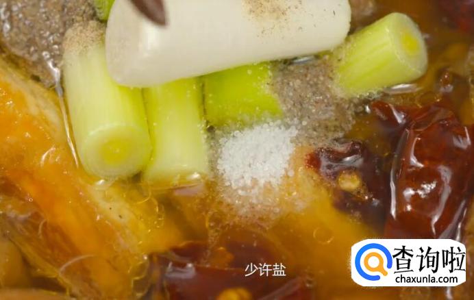 加姜片、香叶、八角、盐,煮至七八分熟。