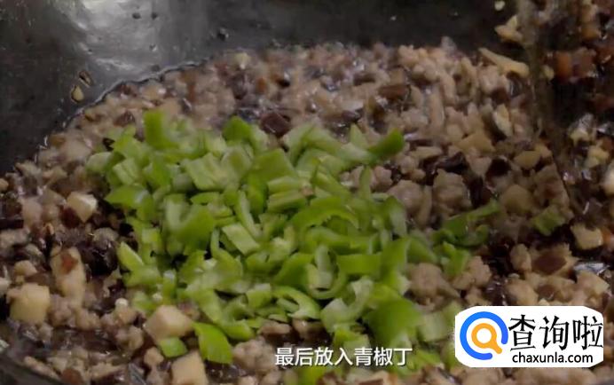 最后放入青椒丁,翻炒两下就好了。