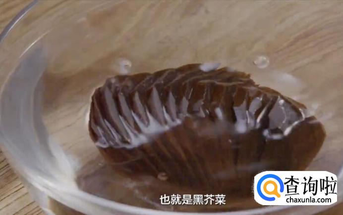 黑三剁要用到玫瑰大头菜,也就是黑芥菜。大头菜先用清水浸泡1个小时,减少咸味。