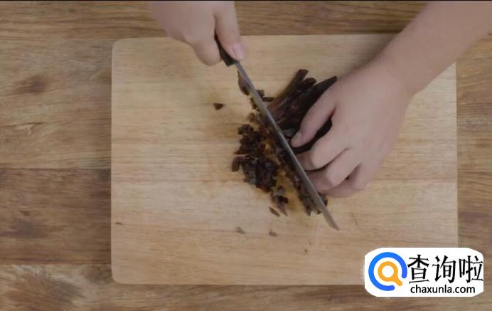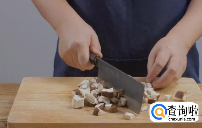 新鲜香菇洗净后切丁剁碎。
