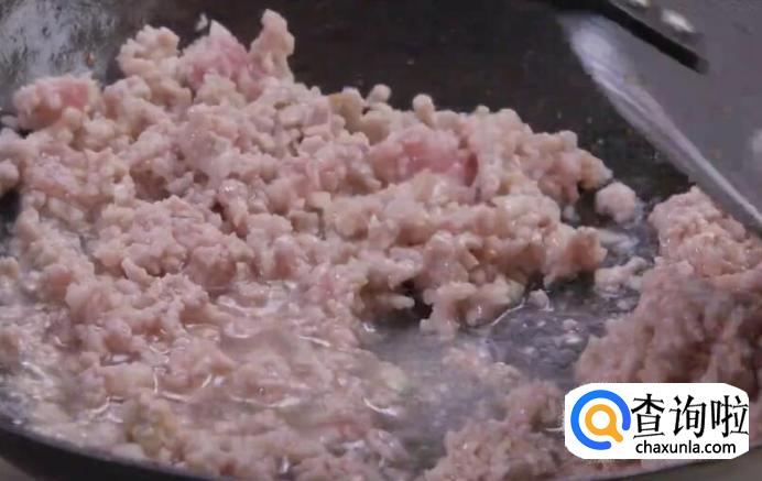 热锅起油,倒入姜末、蒜末爆香,然后加入肉末炒至断生。