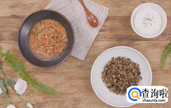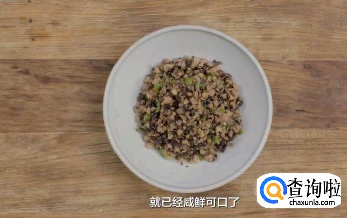黑三剁一般是用玫瑰大头菜,肉末,香菇。肉末其实是粉红色,但是把它炒得稍微焦香一点,它会显得颜色有点暗。根据你自己的口味,也可以选择黑色的豆豉和黑木耳。