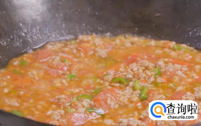 再放西红柿丁继续翻炒到出汁。
