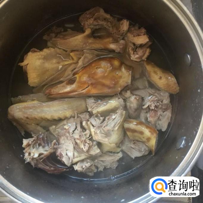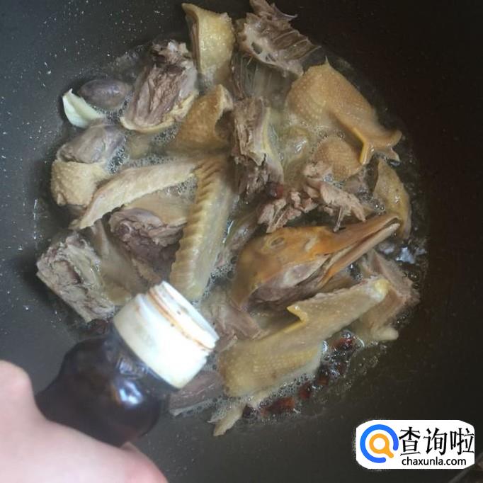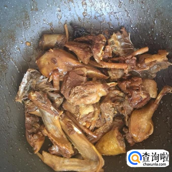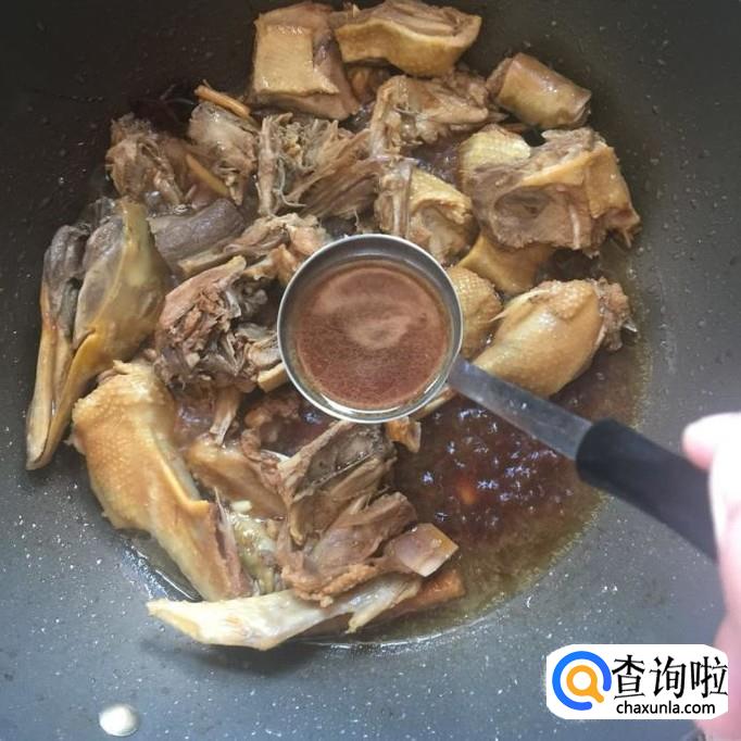 在红烧过程中,把汤汁不断的浇淋在鸭肉身上,如下图所示。