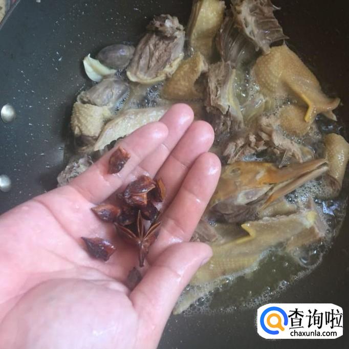 接着往锅中加入适量的八角,酱油和党参,如下图所示。