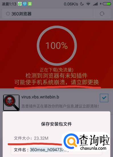 当浏览网址时出现不明信息攻击,立即退出,不要安装不明软件。