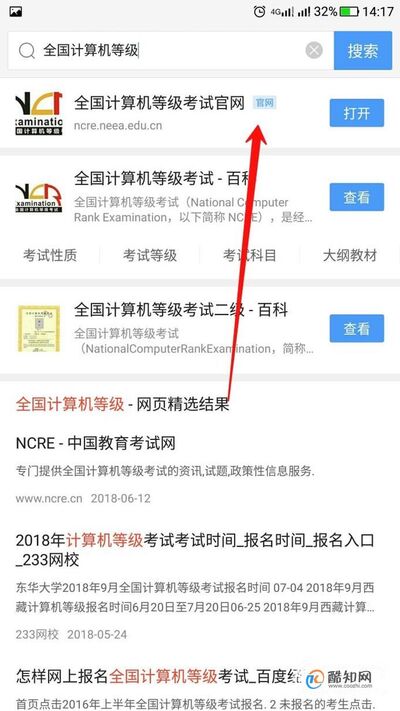首先先在网页上搜索全国计算机等级考试的官网,然后点击进入。