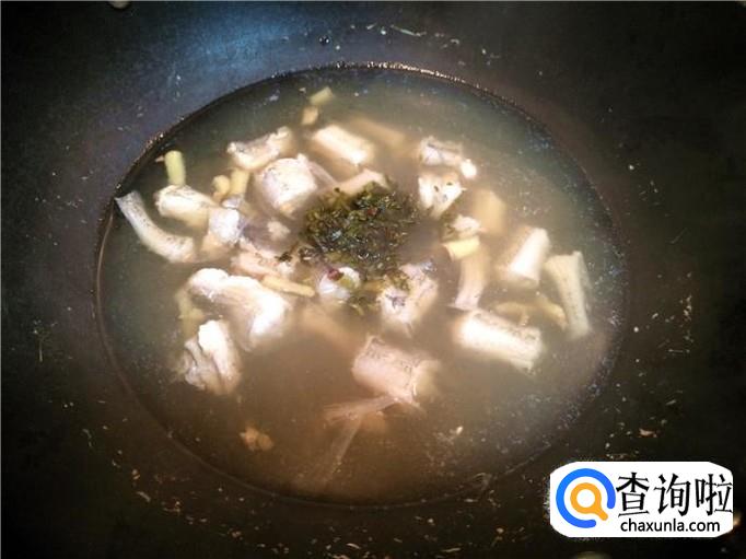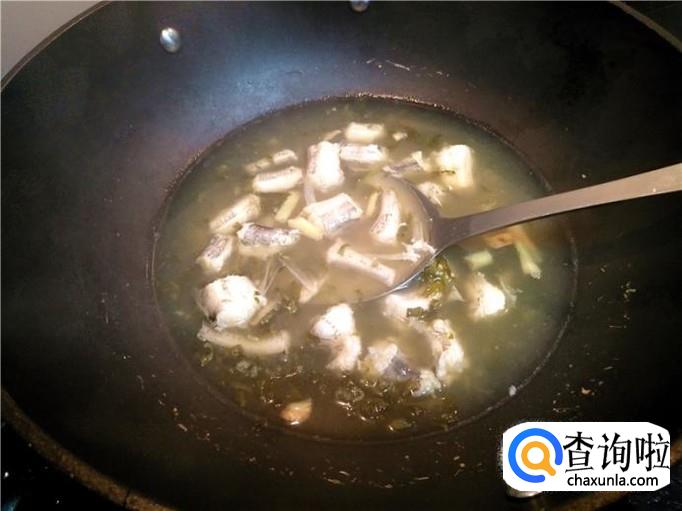 确定水鳝煮熟了,再加入雪菜,煮1分钟。