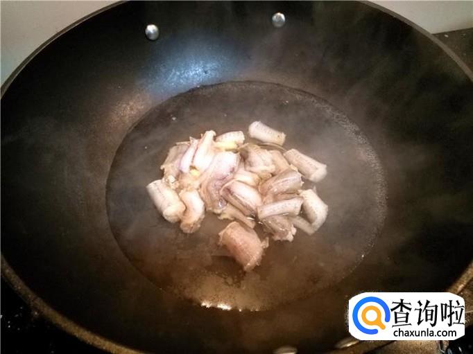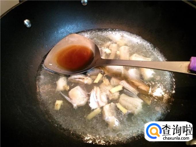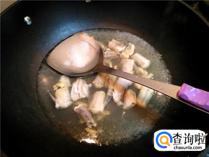 等水温热了,大概50度,加入生姜和水鳝去腥。