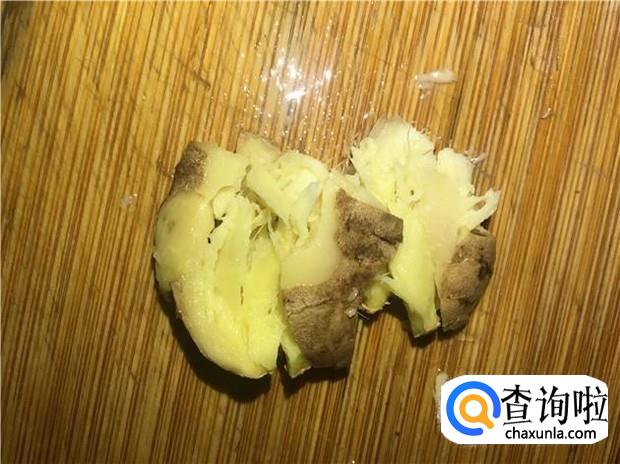 老姜用刀背拍扁,备用。