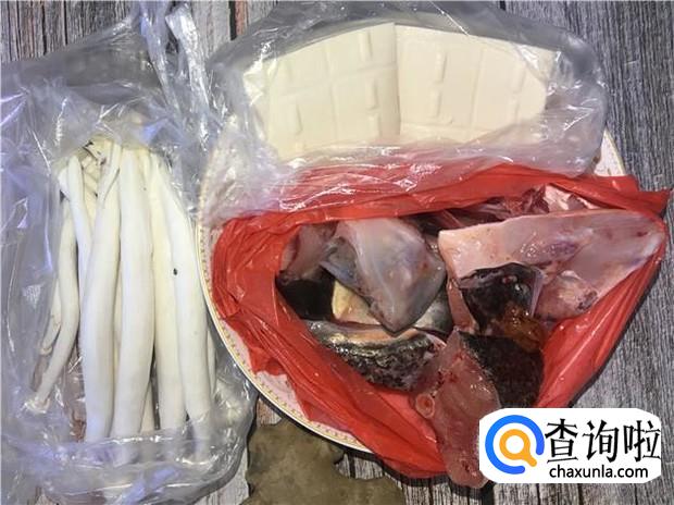 先把所有食材准备好:海鲜菇适量、嫩豆腐两块、草鱼鱼头一只、老姜适量。