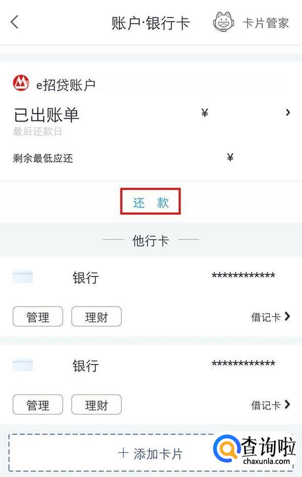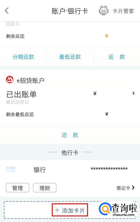 这里有账户还款信息和银行卡信息,点击下方的“添加卡片”;