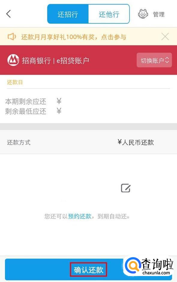 确认金额,点击下方的确认还款;