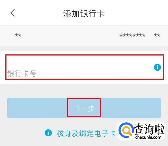 输入卡号,必须是自己名下的卡,点击下一步;