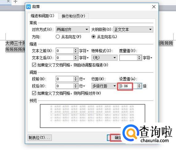 我们点击两下之后就无法点击下去了,最小设置值为0.06,之后我们点击确定按钮;