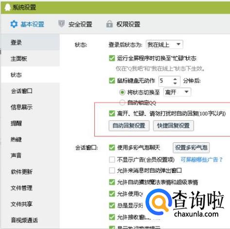 打开状态选项卡以后,点击“自动回复设置”