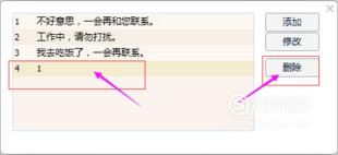 点击“自动回复设置”后弹出自动回复的多个内容,选中以后点击后面的“删除”