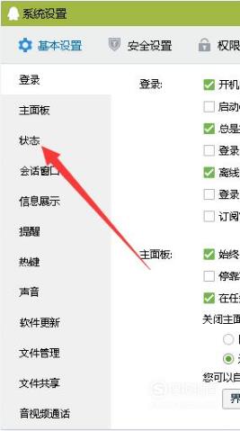 设置界面是左侧是选项卡,点击“状态”。