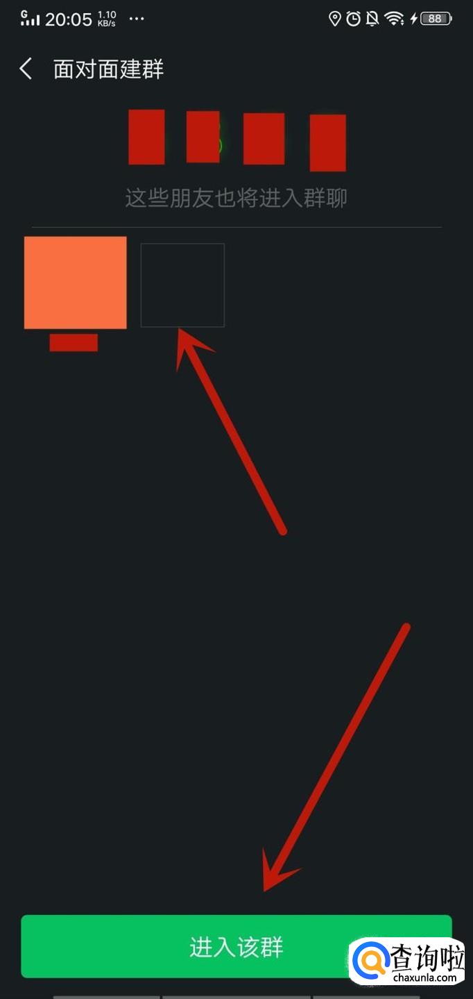 然后再进入的界面,上面可以看到密码,点击上面的灰色框可以去添加好友建立微信群,然后点击下面的“进入该群”,如图所示。