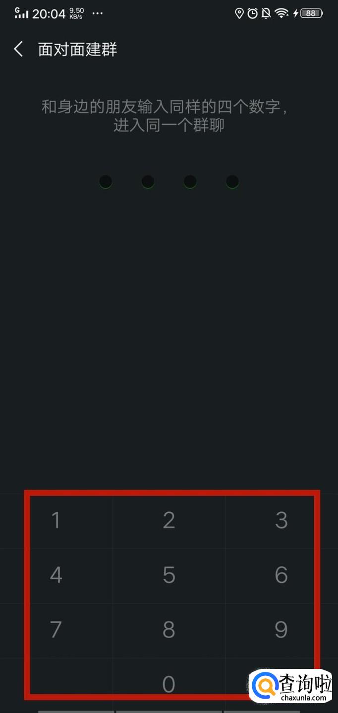 然后在进入的界面,输入四位数字作为密码。这个密码是其它好友加入时需要输入的密码,如图所示。