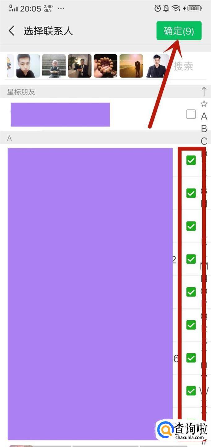 最后在来到的界面,可以勾选自己的好友,点击“确定”,就可以邀请其它用户,建立一个多人的微信群。