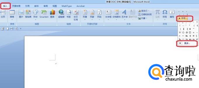 在Word文档中,如图所示,点击“插入”,“符号”,然后在扩展项中选择“更多”。