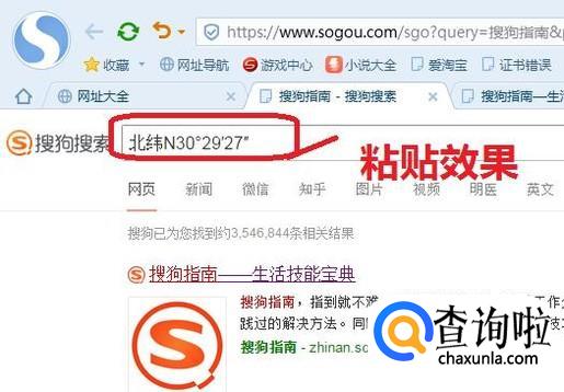 最终输入效果如下图所示,我们把经纬度用鼠标选中以后,复制粘贴到网页或者对话框中就可以了。