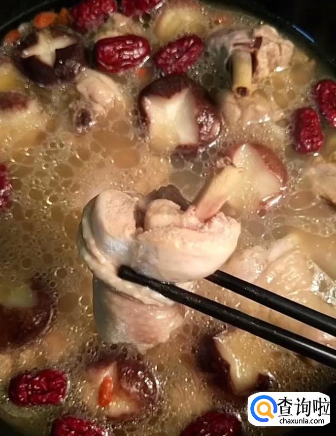 最后放入适量的香菇,大枣,枸杞,盖上锅中再炖10分钟,营养美味的鸡汤就制作完成啦!