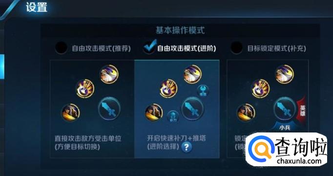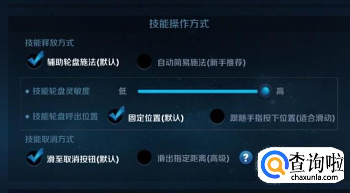 向下滑动之后,可以对技能操作方式进行设置,如图所示。