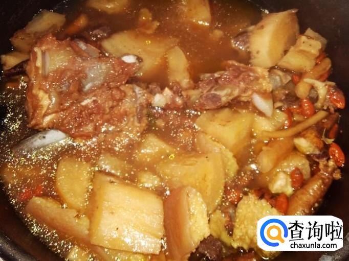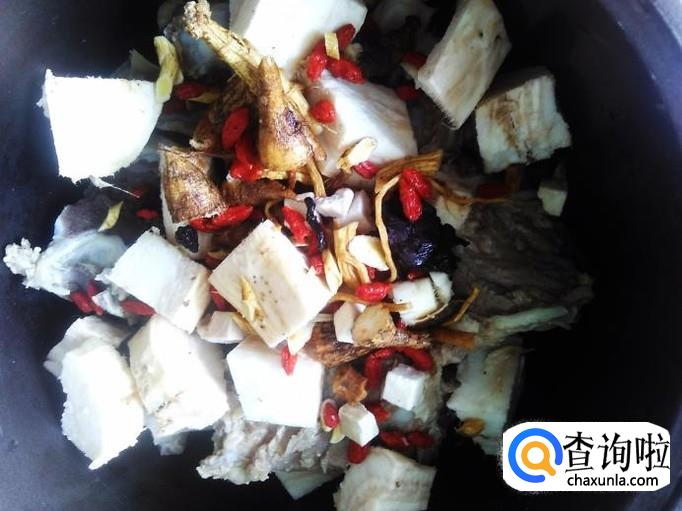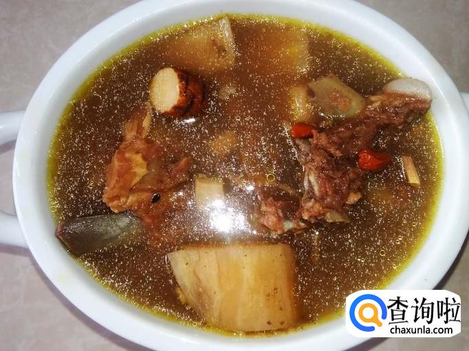 葛根500克,猪腰骨700克,牛大力40克,当归、党参、枸杞、首乌、黄芪、茯苓各10克,姜片、料酒适量。