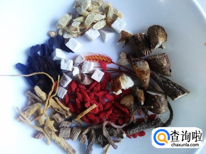 把当归、党参、枸杞、首乌、黄芪、茯苓准备好。