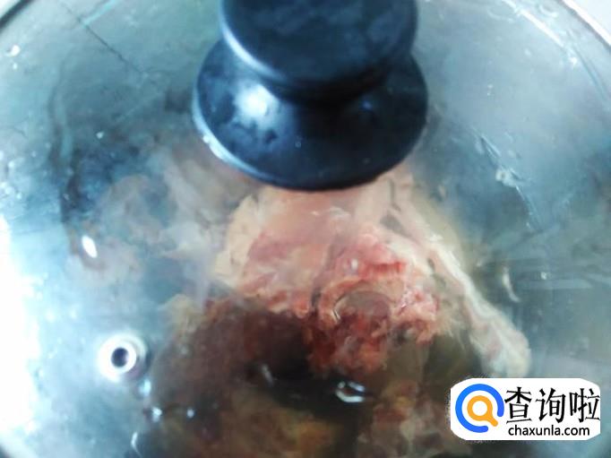 然后把全部食材放到锅里,加水、盐、料酒进去。【水量要没过食材多出2节手指】