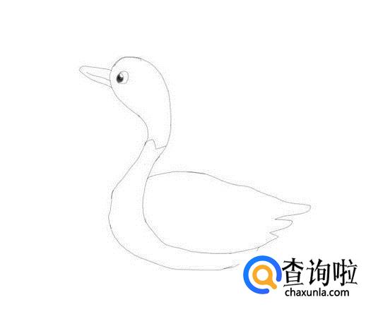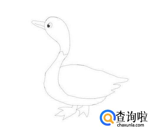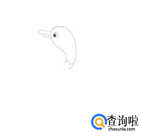 先画出大鹅的头部及脖子,然后再在头部上画出大鹅的眼睛,如图所示: