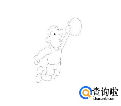 再在身体的两侧画出人物的两只胳膊及手部,然后再在右侧的手部里画出篮球,如图所示: