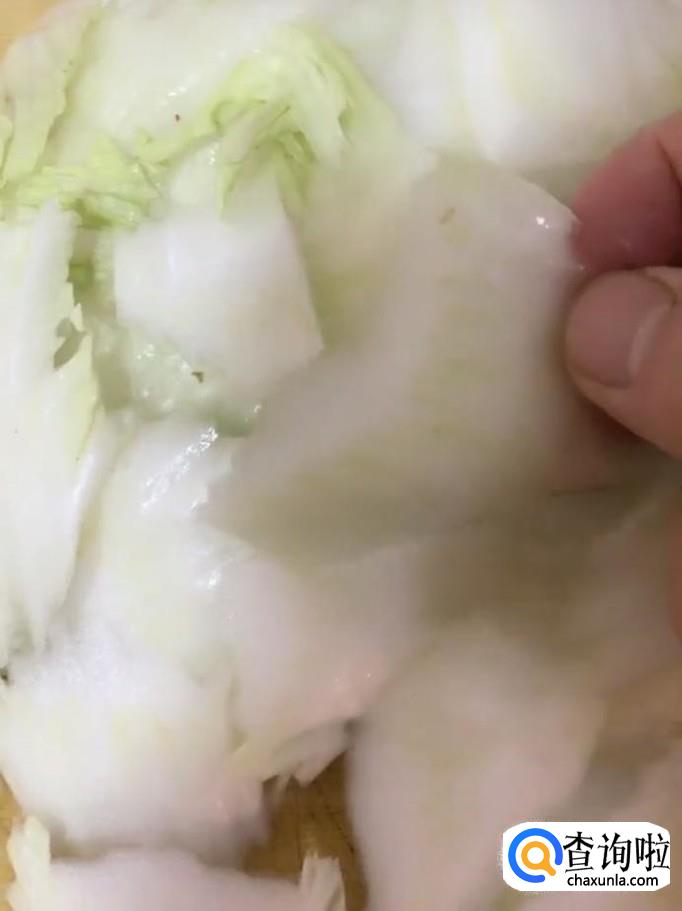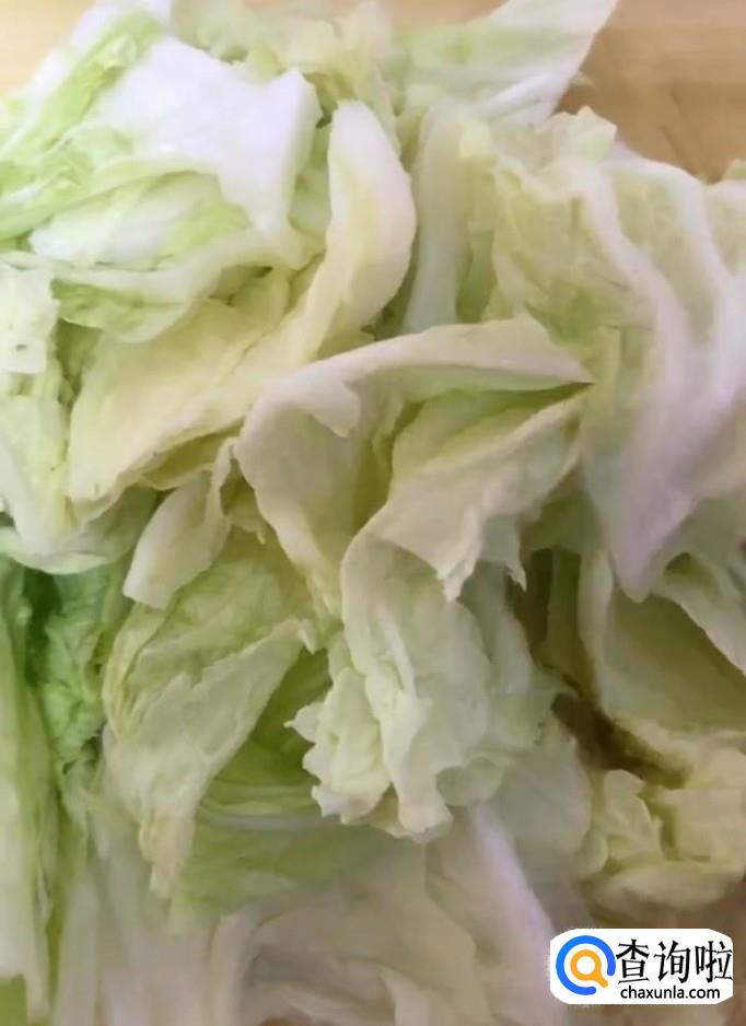 首先我们将白菜帮用刀片成片,白菜叶用手撕成块,清洗干净控干水分备用