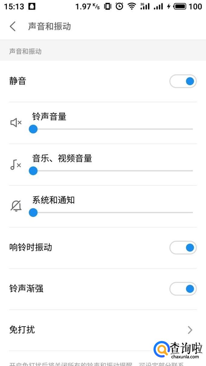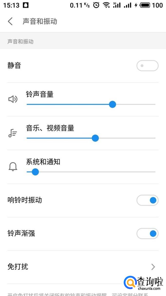 进入声音和振动界面,我们即可看到不同的声音音量选项,进行调整即可。