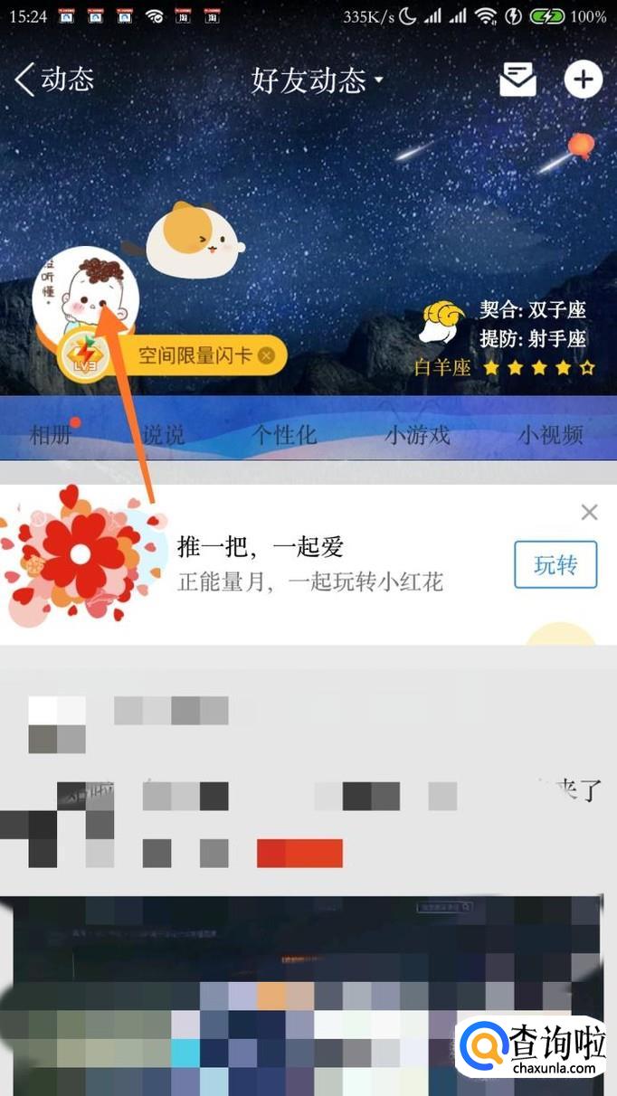 在这里还是好友的动态,因此我们需要点击自己的头像。