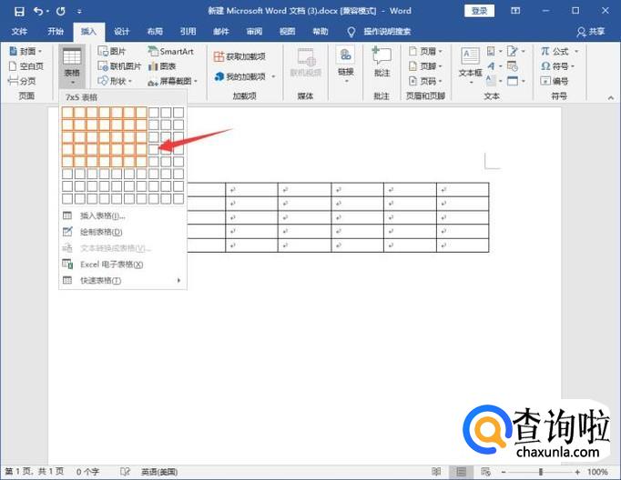 这时候弹出模拟表格,我们用鼠标在模拟表格出选择行与列的数目