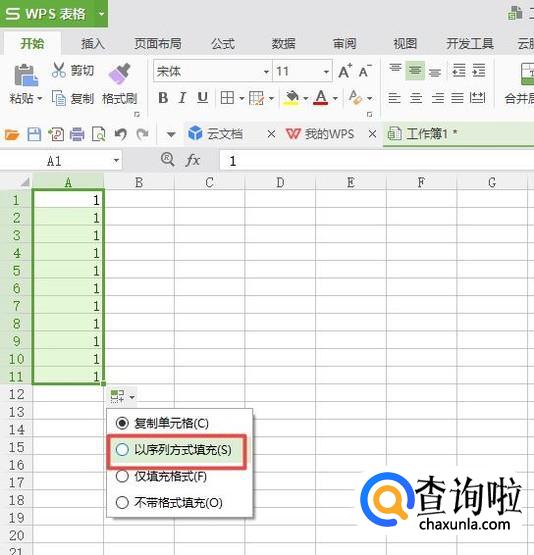 弹出的界面,我们点击以序号方式填充;