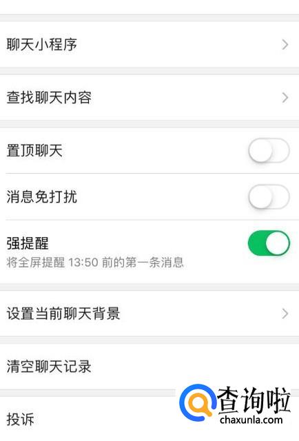 将强提醒功能打开,绿色则为打开状态。