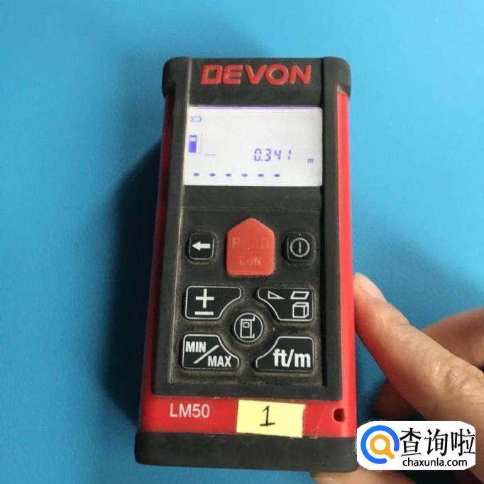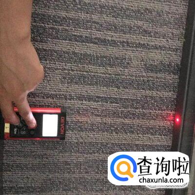 把激光测距仪放在需要测量的地方,按住中间红色的地方就可以测距了,见下图