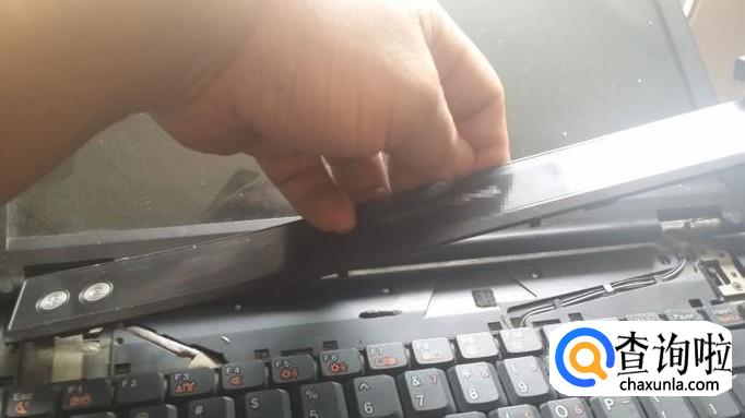 拆下固定键盘的螺丝,还不能拿下键盘,要先把电源按键板取下。用一个比较薄的工具小心撬开按键板右边一角,试探着掀开这一头,然后小心地把整个按键板拆下。