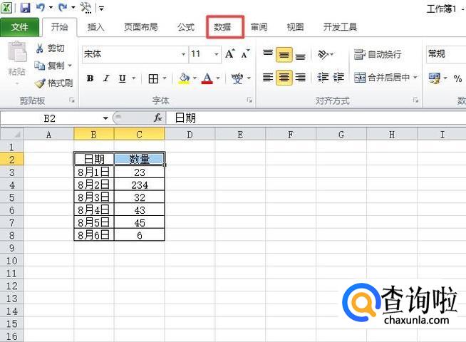 之后我们点击工具栏中的数据;