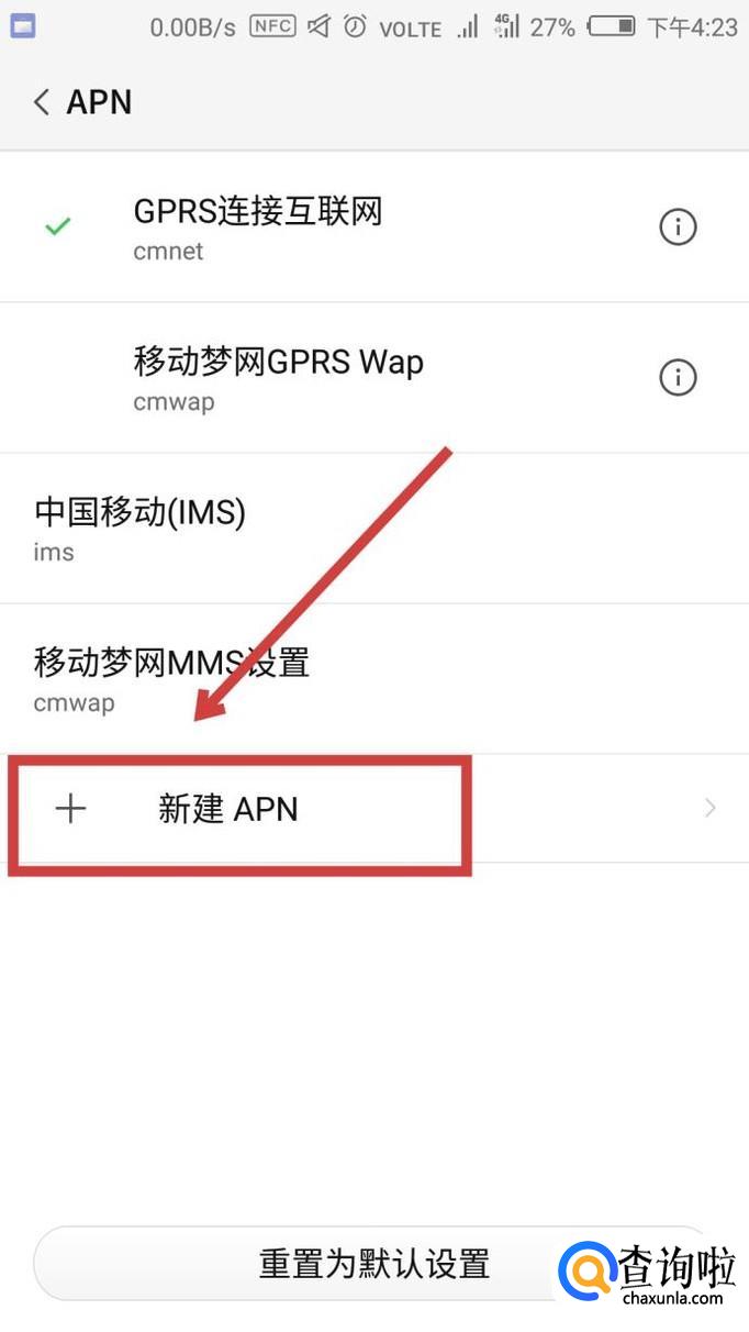 然后点击“新建APN”,点击进入设置即可。