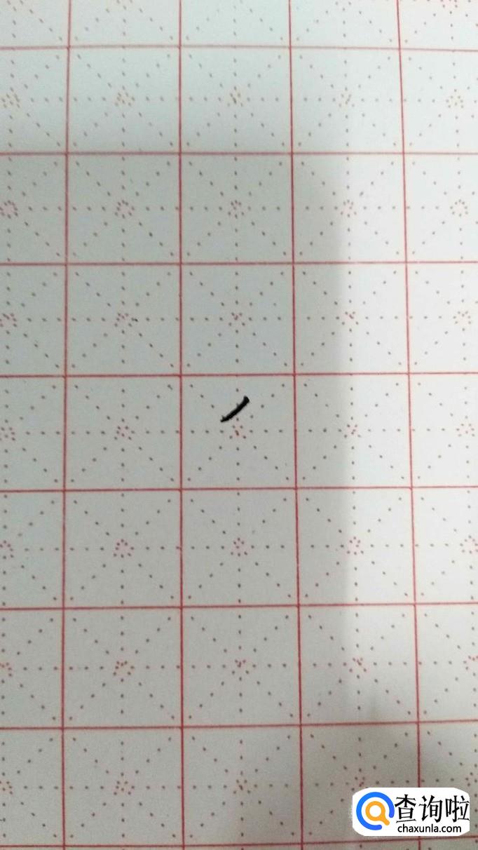 首先,在田字格的上半部分写一个倾斜度为45°的一撇。下笔一顿,留下笔锋。