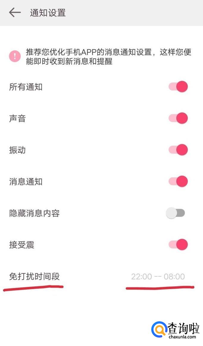 回到通知设置,你就可以看到免打扰时间段已经设置完成,在这个时间段你将收不到通知啦。