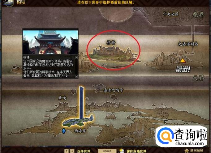 传送至根特地区后,连续两次穿越界面右下方的传送门,进入“鲁夫特悬空海港”地区。