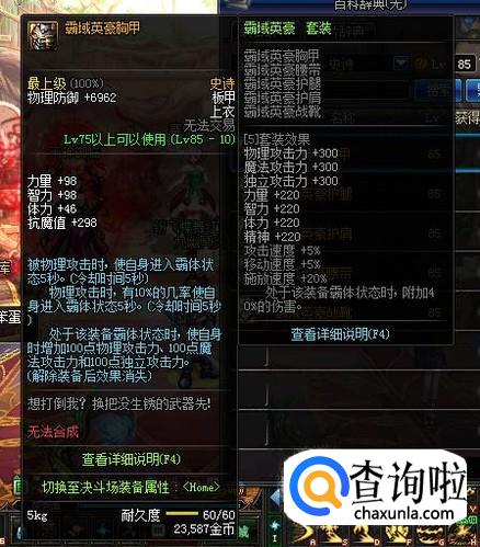 其次便是目前85级史诗防具套装中最强的天御套装,伤害加成很高,甚至超越了部分的90级A套,特效效果也使得我们更容易打出连击。